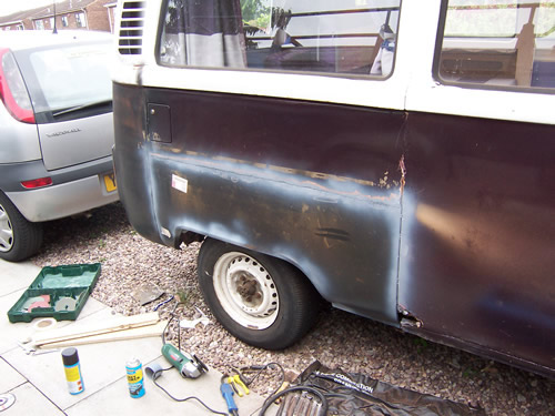Bought for a grand in 2004, painted matt black with very little interior. Had a cheap respray in June 04 ready for Bug Jam. Currently undergoing resto - so far replaced: